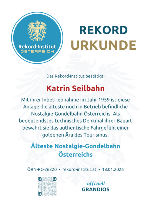 Der Rekord basiert auf dem bewussten Erhalt des originalen Fahrgefühls der Wirtschaftswunderjahre. Die Katrin ist das letzte bedeutende Beispiel für diese Bauform, die früher den gesamten Alpenraum prägte. Die 15-minütige Fahrt bietet eine Qualität der Langsamkeit, die heute selten geworden ist. Diese Bewahrung technischer Kulturgeschichte macht die Seilbahn zu einem emotionalen Denkmal des österreichischen Tourismus, das den Charme einer ganzen Ära konserviert.