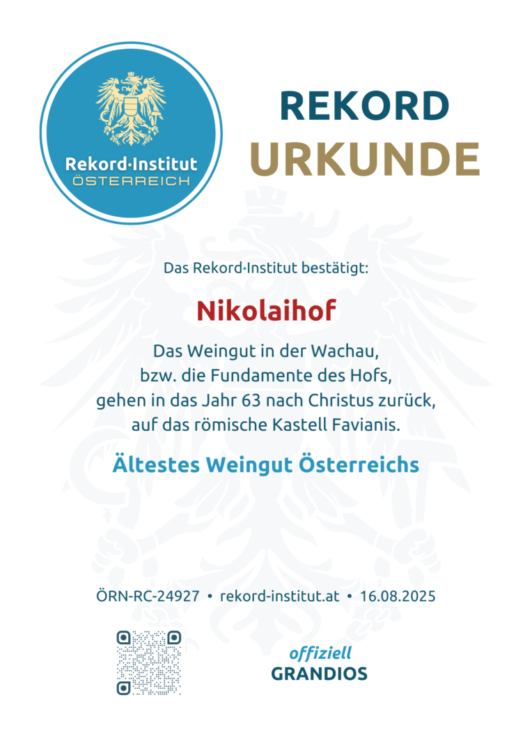 Der Nikolaihof ist eine Zeitreise in Flaschen. Der Titel „Ältestes Weingut Österreichs“ ehrt die einzigartige Bewahrung historischer Substanz über 2.000 Jahre hinweg. Damit ist dieser Ort offiziell eine grandiose Besonderheit unserer Heimat und ein unschätzbares Erbe der europäischen Kulturgeschichte.