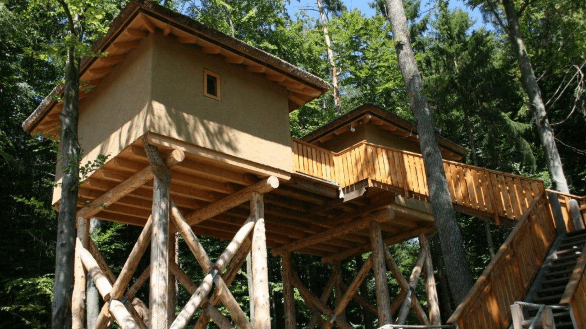 Inmitten des dichten, fast dschungelartigen Waldviertels der Steiermark nächtigen die Gäste hier in luftiger Höhe. Das Besondere: Man befindet sich in direkter Nachbarschaft zu über 90 lebensgroßen Saurier-Modellen, die zwischen den Bäumen hervorragen.