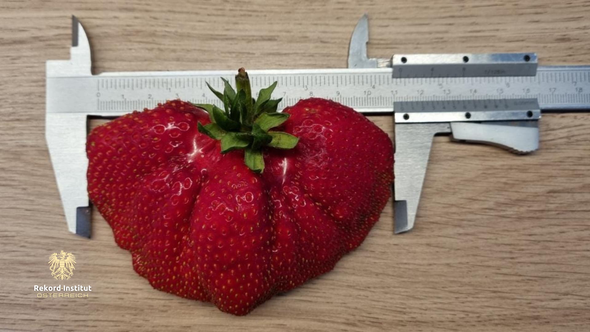 Was diese Erdbeere zum offiziellen nationalen Spitzenwert macht, sind ihre außergewöhnlichen Dimensionen, die penibel vermessen wurden: