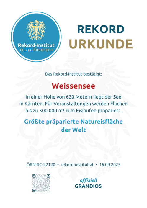 Der Weissensee ist ein spektakuläres Zeugnis für die Symbiose aus Naturereignis und menschlicher Logistik. Der Titel „Größte präparierte Natureisfläche der Welt“ ehrt die weltweit einzigartigen Bedingungen und die enorme Pflegeleistung, die dieses Wintermärchen jedes Jahr aufs Neue ermöglicht. Damit ist der Weissensee offiziell ein unersetzliches Aushängeschild unserer Heimat.