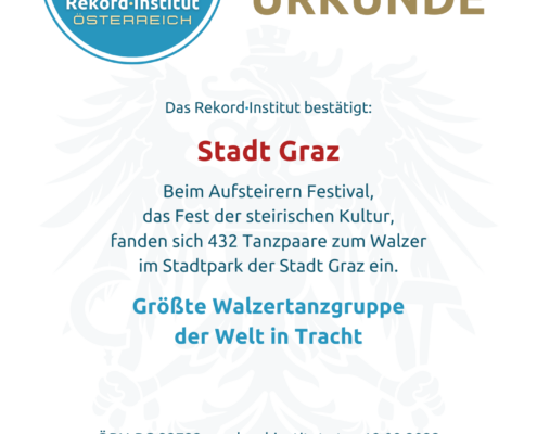 Dieser Rekord ist eine Hommage an den Wiener Walzer und die steirische Identität. Er zeigt auf lebendige Weise, wie tief verwurzelt das Tanzen und die Tracht in der österreichischen Seele sind. Das „Aufsteirern“ bot hierfür die perfekte Kulisse, um zu beweisen, dass Tradition modern und mitreißend inszeniert werden kann. Ein offiziell zertifiziertes Meisterwerk der Lebensfreude, das die Landeshauptstadt Graz als Zentrum lebendiger Volkskultur ausweist.
