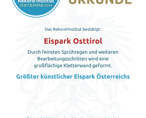 Der Eispark Osttirol ist eine geniale Symbiose aus Naturkulisse und menschlicher Erfindungskraft. Der Titel „Größter künstlicher Eispark Österreichs“ ehrt die konsequente Weiterentwicklung des alpinen Sportschutzes und der Erlebnispädagogik. Damit ist dieser Park offiziell eine grandiose Besonderheit unserer Heimat und ein Pflichttermin für jeden Winter-Abenteurer.