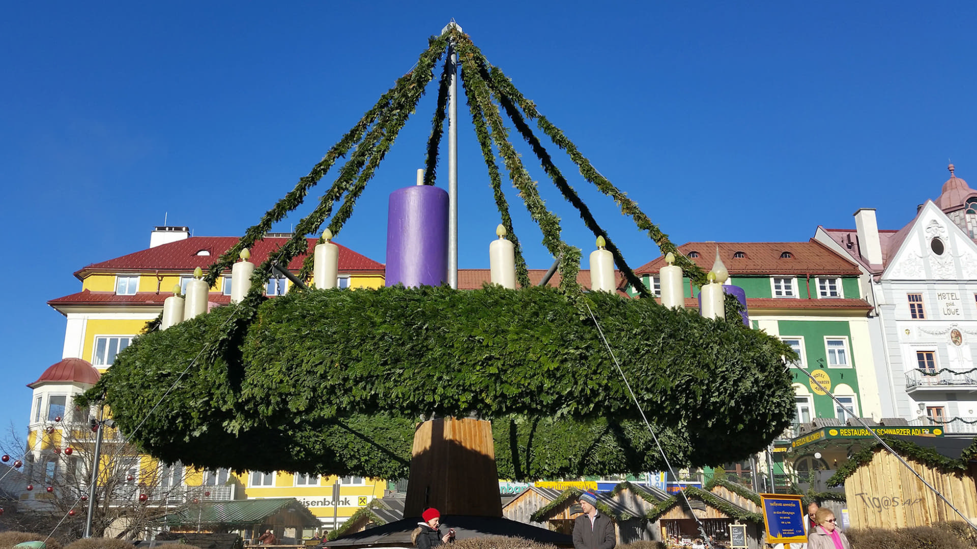 Was diesen Kranz zum offiziellen Weltrekordhalter macht, sind seine gewaltigen Ausmaße: Mit einem Durchmesser von 12 Metern und einem Gesamtgewicht von 6 Tonnen ist er eine ingenieurstechnische Meisterleistung. Doch die wahre Besonderheit liegt in seinem Detail. Er trägt exakt 24 Kerzen – 20 kleine für die Wochentage und 4 große für die Adventsonntage. Damit ist er eine authentische Hommage an den allerersten Adventkranz aus dem 19. Jahrhundert und verbindet moderne Rekordmaße mit tiefer historischer Treue.