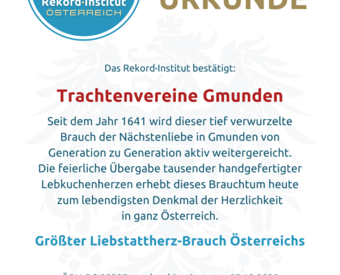 Der Liebstattsonntag in Gmunden würdigt das kontinuierliche Engagement der Brauchtumsgruppen und Vereine und sichert dieser einzigartigen, herzerfüllten Tradition den offiziellen Titel Größter Liebstattherz-Brauch Österreichs.
