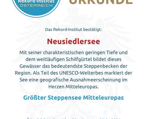 Der Neusiedler See ist ein lebendiges Welterbe und ein geografisches Unikat. Der Titel „Größter Steppensee Mitteleuropas“ ehrt die außergewöhnliche Natur dieses besonderen Lebensraums. Damit ist der See offiziell eine grandiose Besonderheit, die in dieser Form kein zweites Mal in Mitteleuropa zu finden ist und den östlichsten Punkt deiner Rekordjagd markiert.