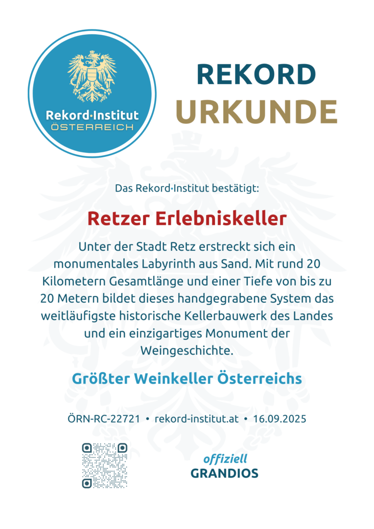 Unter der malerischen Weinstadt Retz im niederösterreichischen Weinviertel verbirgt sich ein Bauwerk von monumentalen Ausmaßen. Der Retzer Erlebniskeller ist offiziell der größte historische Weinkeller Österreichs. Dieses unterirdische System ist ein beeindruckendes Zeugnis mittelalterlicher Ingenieurskunst und dokumentiert die jahrhundertelange Bedeutung des Weinhandels für die gesamte Region.