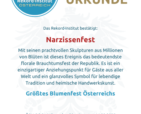 Das Narzissenfest vereint Natur, Brauchtum und handwerkliche Präzision auf Rekordniveau. Die schiere Größe und die tiefe Verwurzelung im Ausseerland machen es zu einer offiziell grandiosen Besonderheit unserer Heimat.