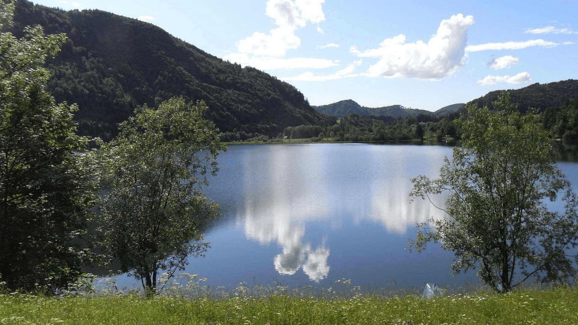 Der Uferweg rund um den See ist kinderwagentauglich und flach – ideal für einen entspannten Familienspaziergang, bei dem der Blick immer wieder über die spiegelglatte Oberfläche schweifen kann.