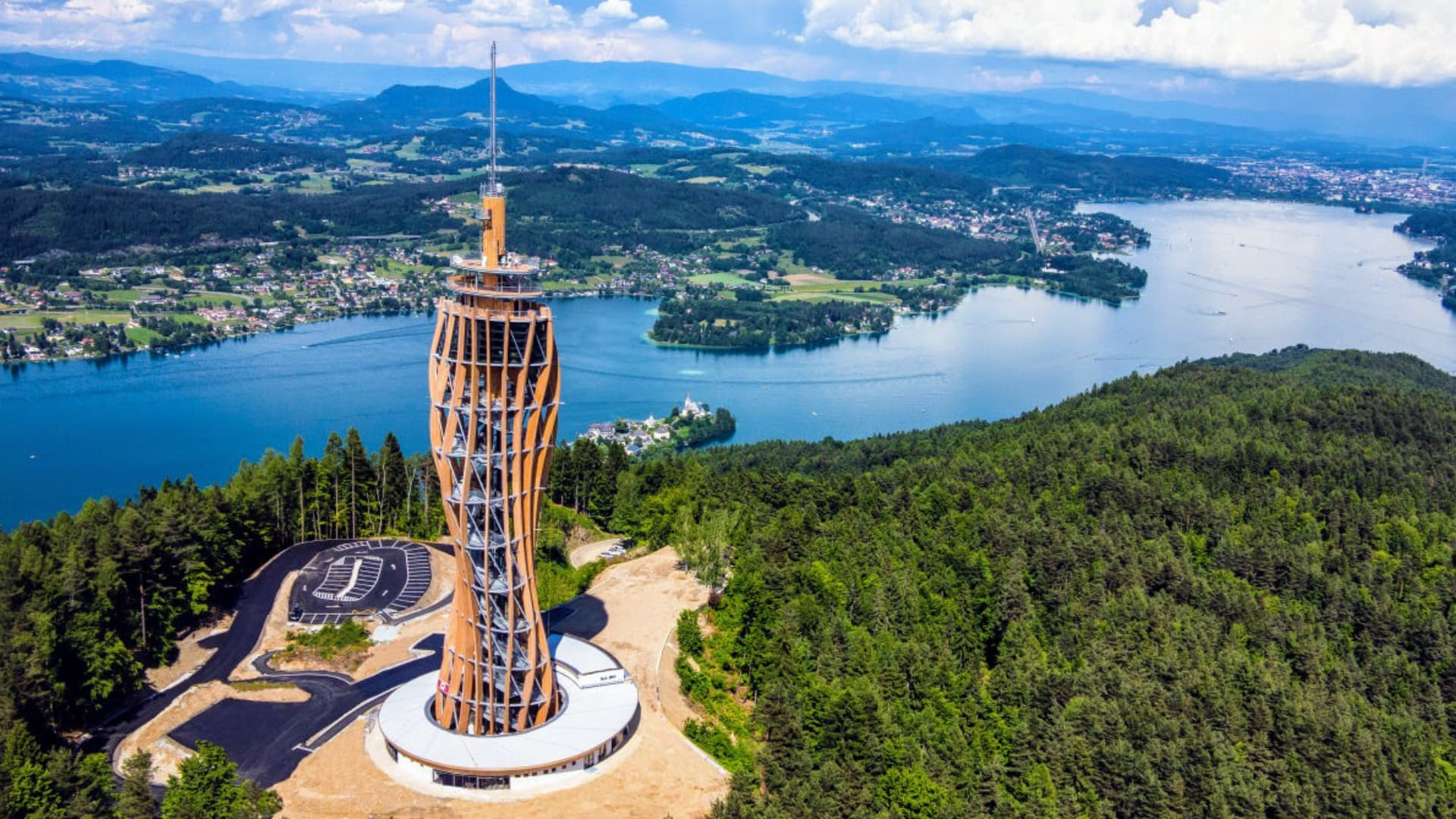 Südlich des Wörthersees, auf der Kuppe des Pyramidenkogels, ragt eine spiralförmige Skulptur in den Himmel, die weltweit ihresgleichen sucht. Mit einer Gesamthöhe von 100 Metern ist der Aussichtsturm am Pyramidenkogel offiziell der höchste aus Holz errichtete Aussichtsturm der Erde. Er ist ein weithin sichtbares Symbol für die Symbiose aus modernster Technik und nachhaltiger Bauweise und bietet ein Erlebnis, das Architektur, Natur und Adrenalin auf einzigartige Weise verbindet.