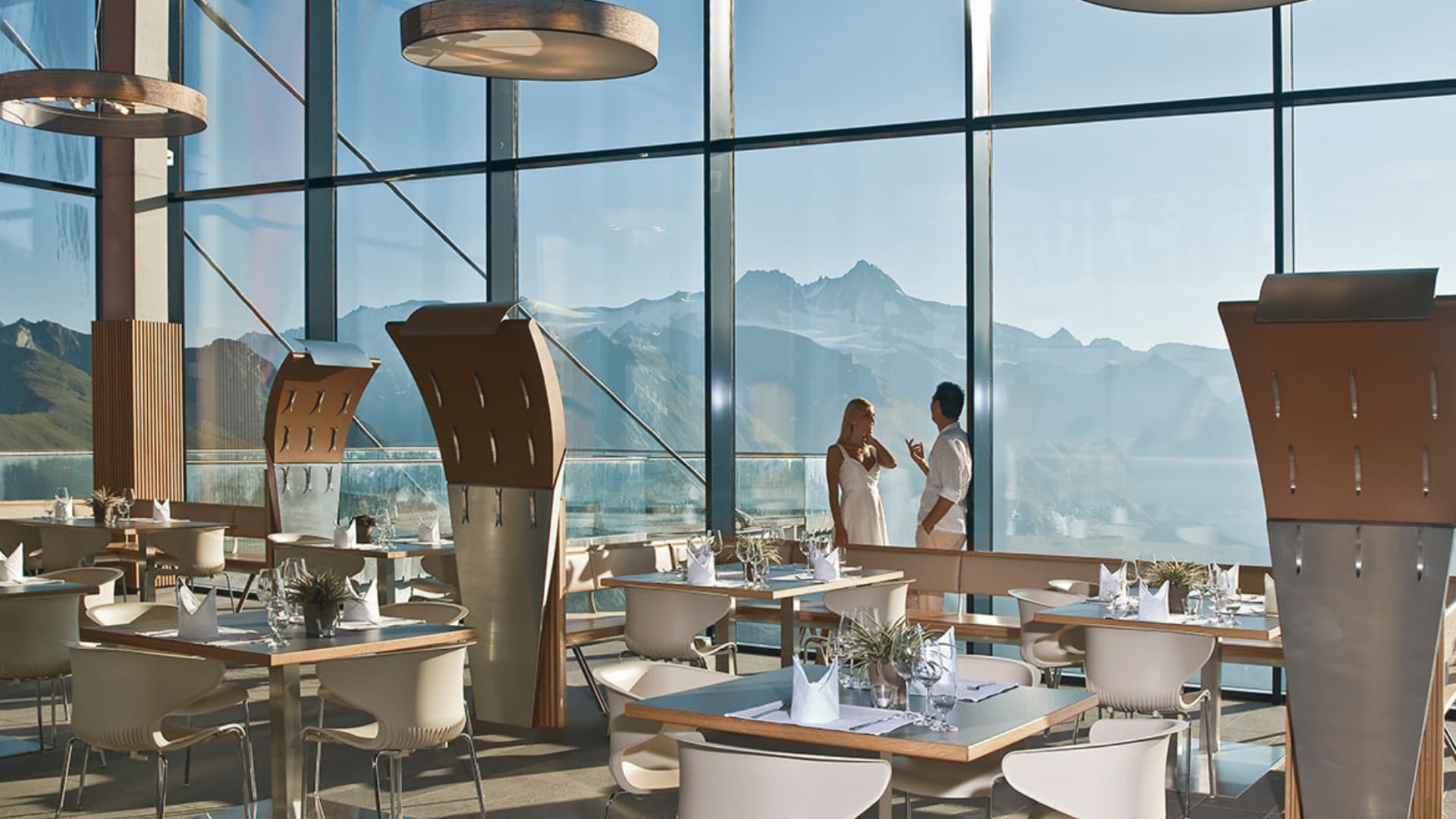 Die geografische Lage der Adler Lounge bietet einen 360-Grad-Rundumblick, der in der österreichischen Hotellerie seinesgleichen sucht. Von den Räumlichkeiten und der weitläufigen Terrasse aus eröffnet sich ein Panorama auf über 60 majestätische Dreitausender-Gipfel. Das Sichtfeld umfasst dabei die beiden höchsten Erhebungen der Republik Österreich – den Großglockner und den Großvenediger. Diese visuelle Dominanz unterstreicht den Status des Hotels als „Adlerhorst“ der Alpen.