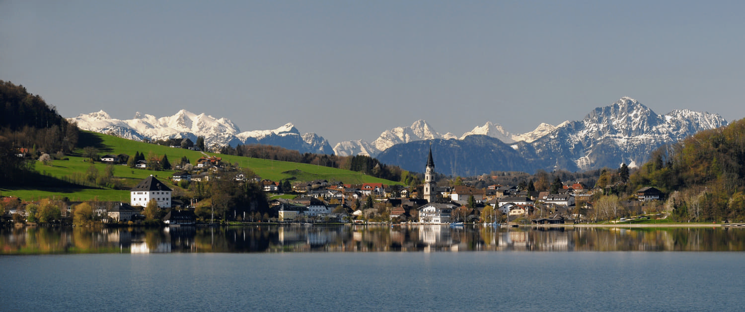 Die Marktgemeinde Mattsee selbst ist ein architektonisches Juwel. Sie liegt auf einer schmalen Landzunge, die den Mattsee vom Obertrumer See trennt: