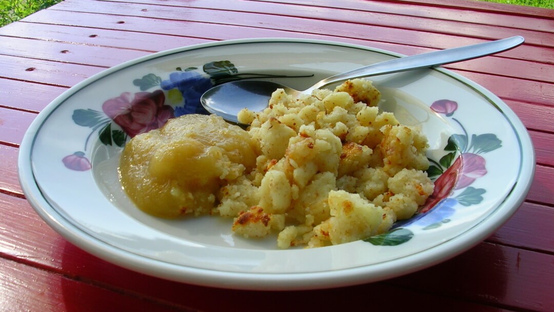 Traditionell wird der Riebel mit Apfelmus, Kompott oder einfach nur mit Milchkaffee genossen. Aber sei gewarnt: Kaum ist er am Teller, ist er auch schon wieder weg!