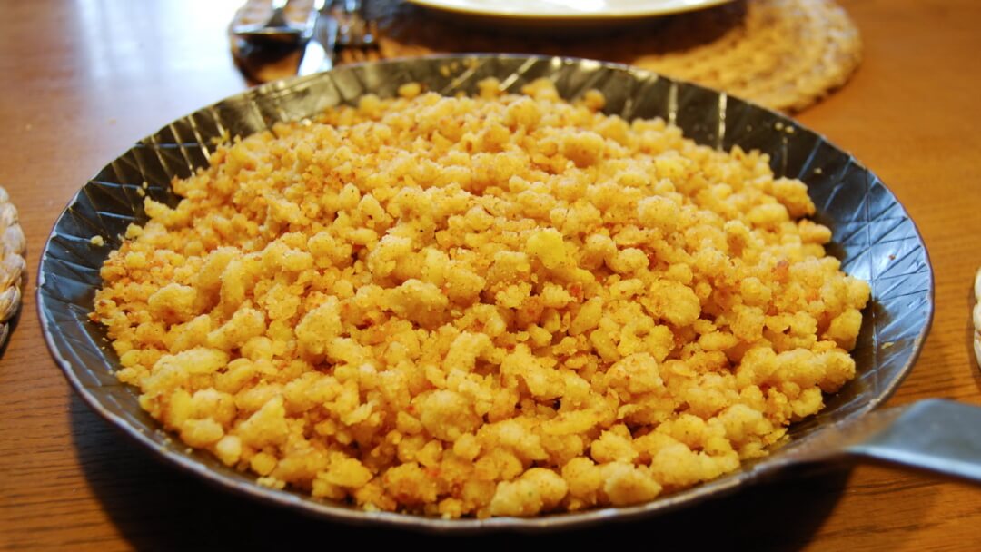 Kenner wissen, dass das Wichtigste beim Riebel das „Anstoßen“ ist – das langsame Entstehen der goldbraunen Kruste in der Pfanne, die für den unverwechselbaren Geschmack sorgt.